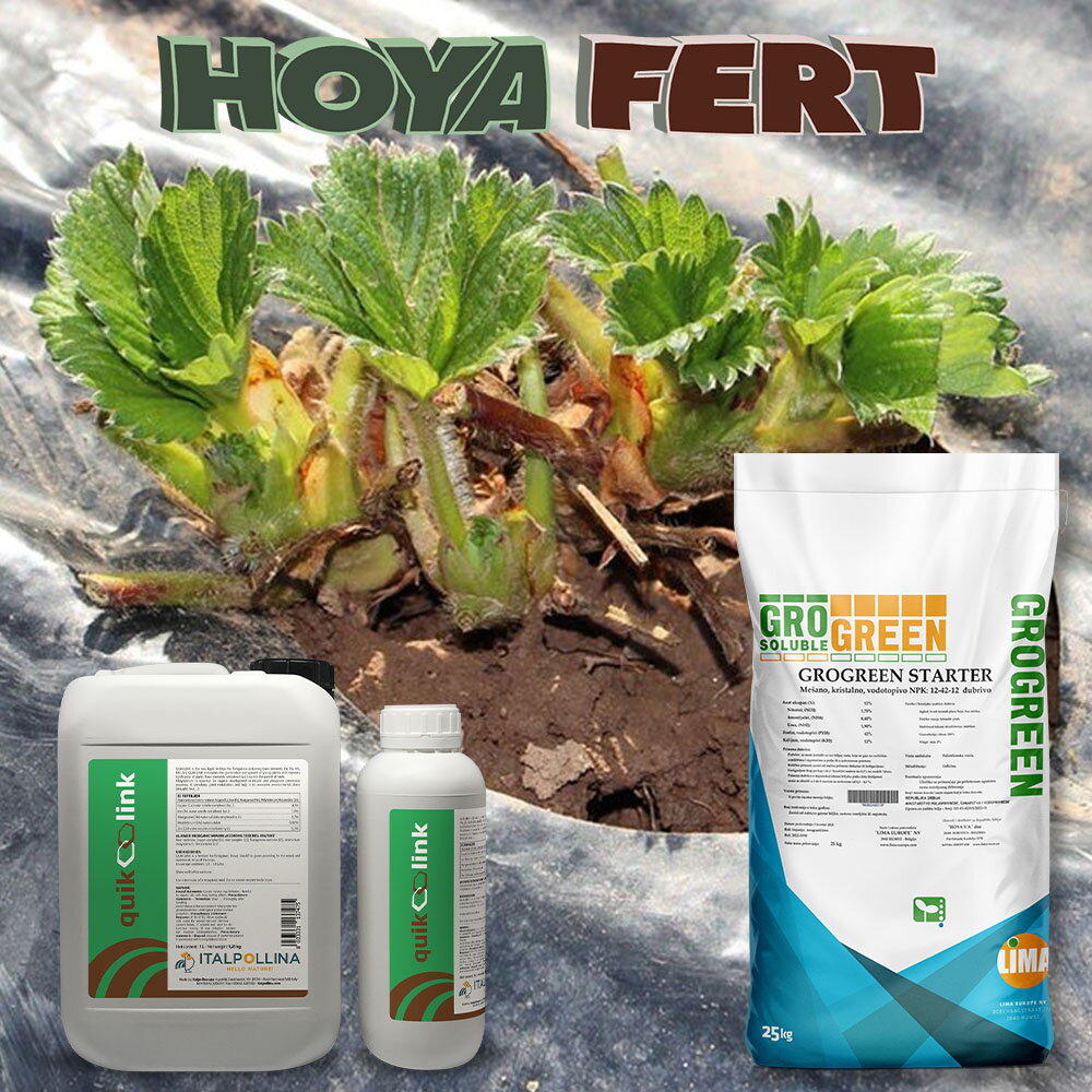 Uobičajeno, veliki broj proizvođača primenjuje starter GroGreen STARTER 12-42-12 u koncentraciji 1-1,5 g/biljci fertigacijom, mnogo pre aktiviranja korena odnosno razvoja 2-5 listova, i bez biostimulatora. Od izuzetne je važnosti u ovom momentu u vodotopiva đubriva koristitite i biostimulator QUIK-LINK. Biostimulator QUIK-LINK će nastaviti da inicira razvoj novog bočnog korena, što će obezbediti maksimalno usvajanje hraniva od strane biljke jagode na samom startu njenog rasta i razvoja. Takođe, QUIK-LINK sadrži mikroelemente koji su od suštinske važnosti za pravilno odvijanje životnih procesa unutar biljke jagode, a što je neophodno za njen snažan, i pravovremeni start.