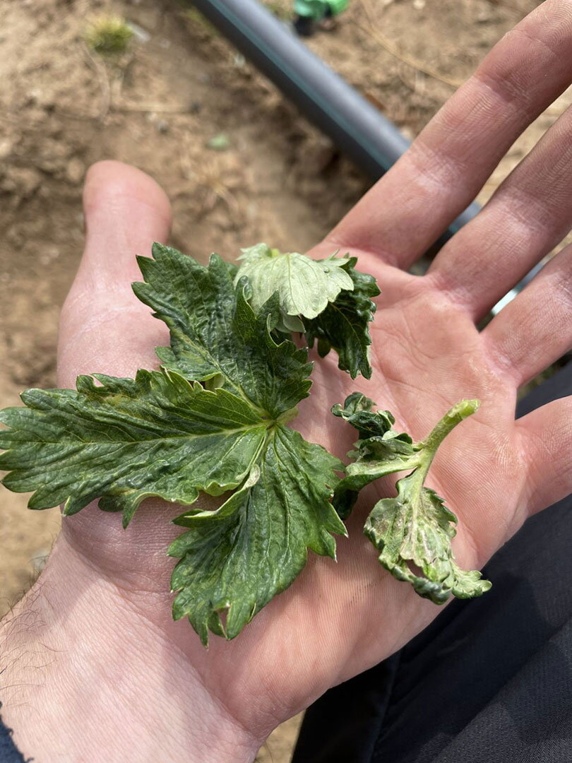 Ukoliko su biljke jagode doživjele vidljiva oštećenja od mraza (bilo koje od predstavljenih na fotografijama), kombinaciji BIOFORGE i TRAINER potrebno je dodati i đubrivo na bazi kalcija (Ca) i bora (B). Naša preporuka je jedinstveni korektor ishrane GEL Ca/B.